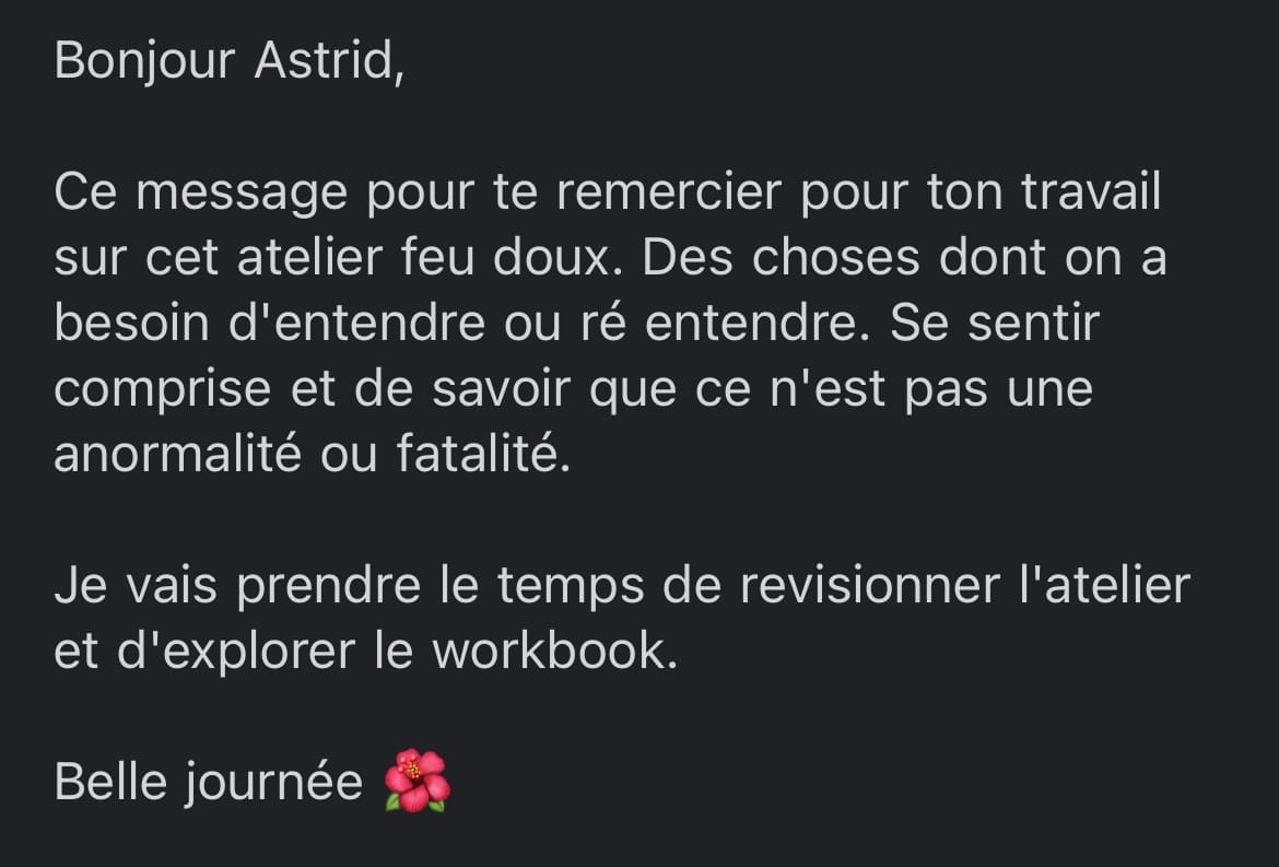 Un petit sourire en coin, et cette pensée : "Ok, maintenant je comprends. J'ai hâte de changer les choses. 😍"